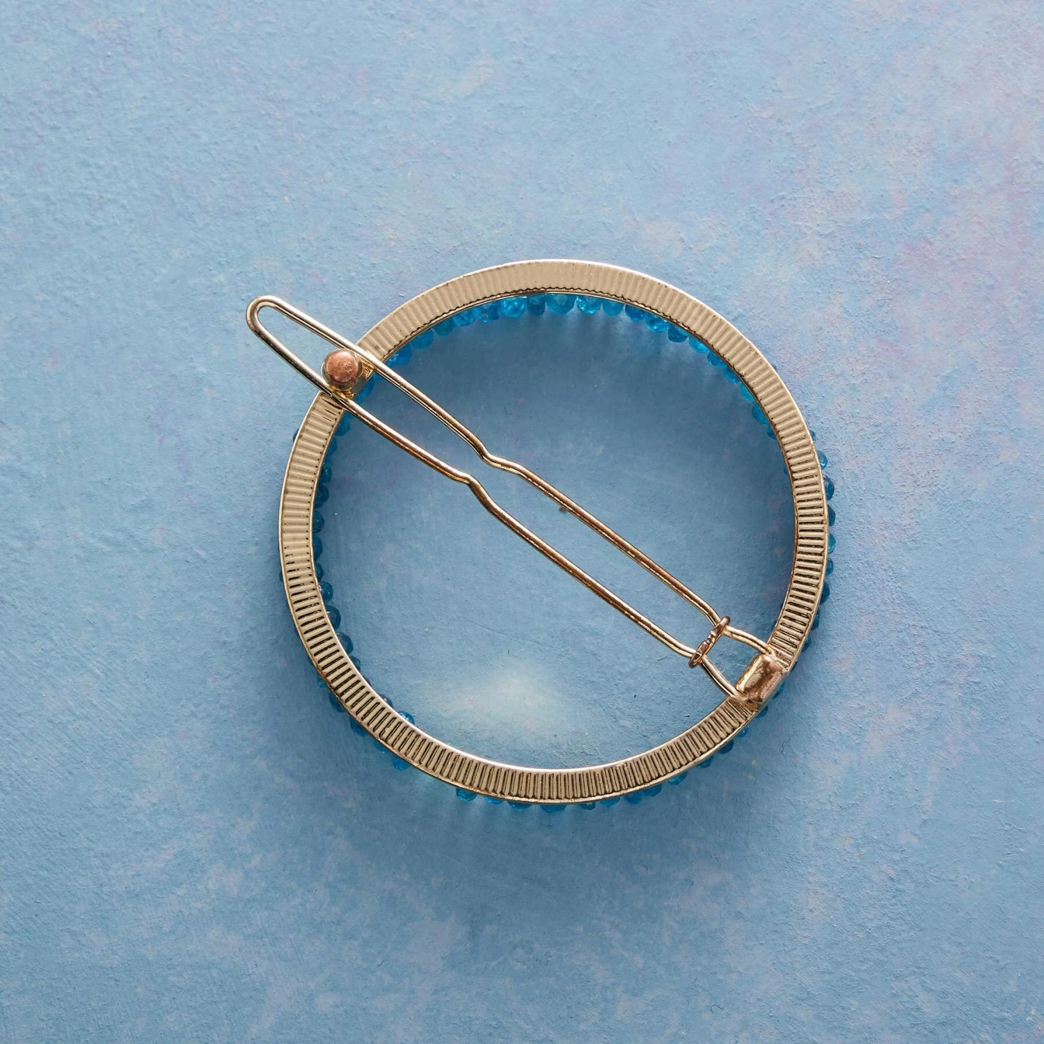 Faceted apatite comes full circle, beginning and ending with a single green chrysoprase on a handcrafted hair accessory. Silver-toned barrette. Exclusive. 1-3/4″ dia.