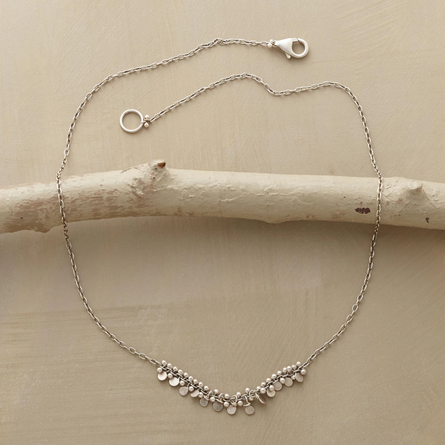 Layered or solo, this sweet sterling silver bead and disc necklace with its frill of sterling beads and hammered discs is pure loveliness. Sterling silver clasp. USA. 16-1/2″L.