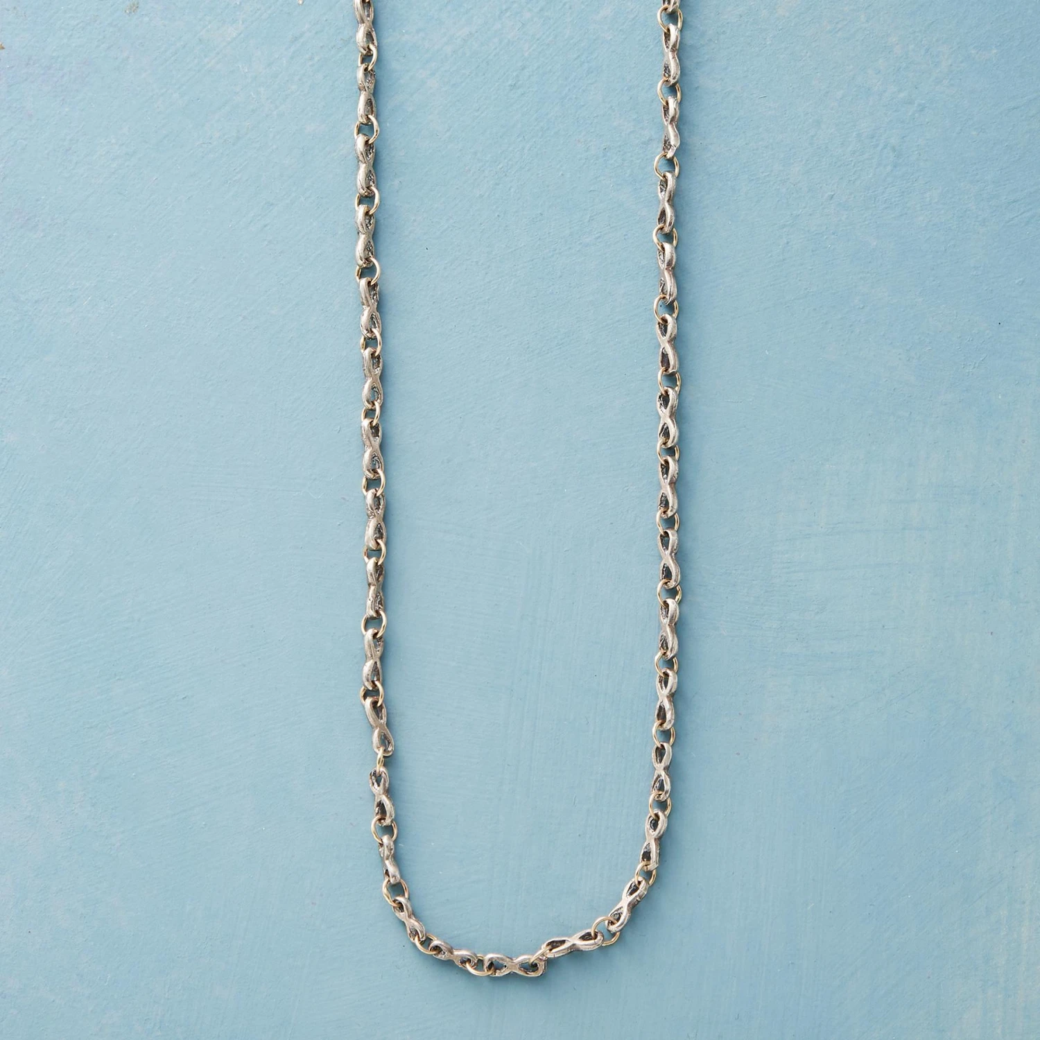 Sterling silver infinity links joined with 14kt gold jump rings. Slip on one or more charms; sold separately. Exclusive. Handmade in USA with lobster clasp. 31″ to 32-1/2″L.