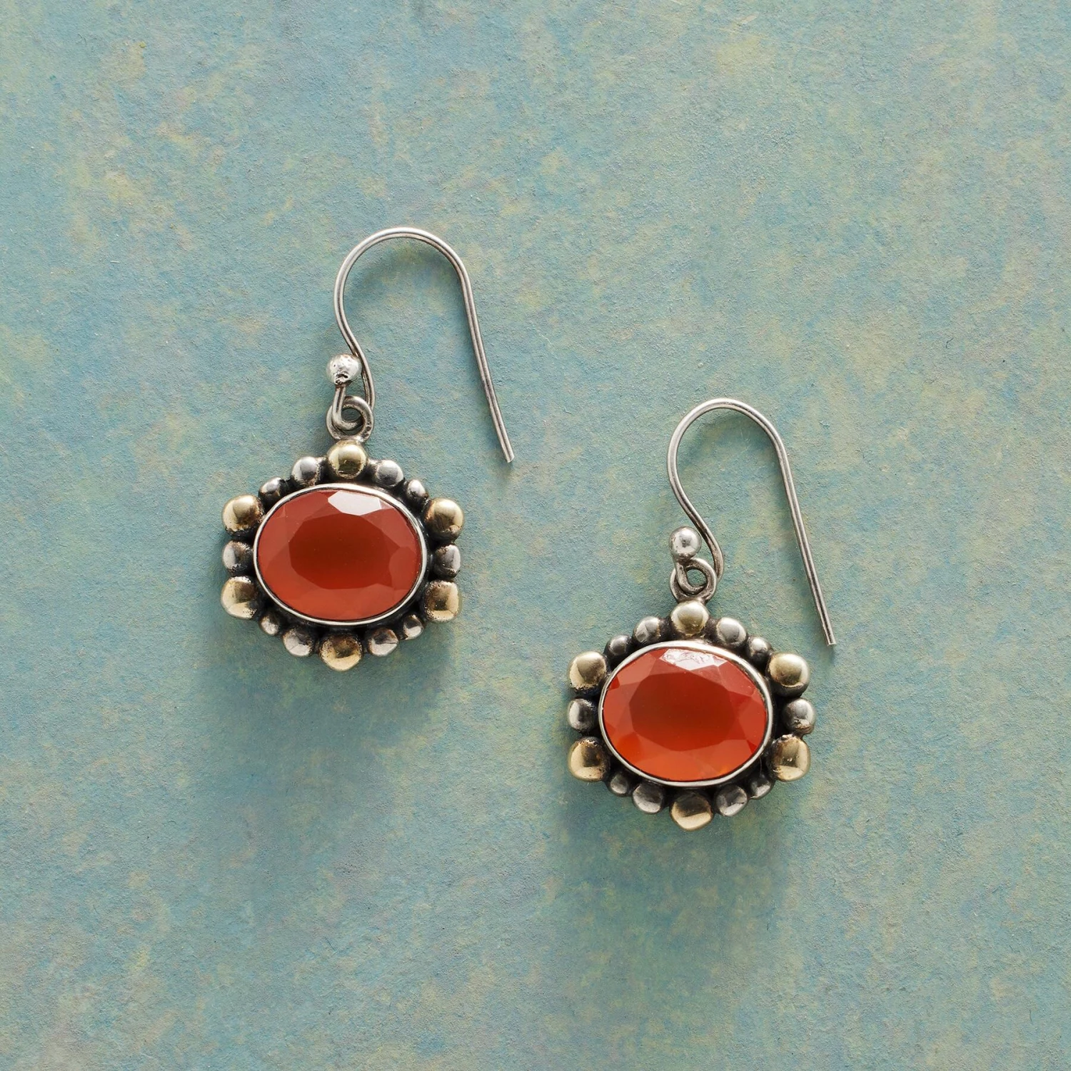 Open-backed sterling silver settings amp up the glow of faceted carnelian, amid an ebullience of sterling and 14kt gold-plated beading. Sterling French wires. Handcrafted. Exclusive. 1-1/8″L.