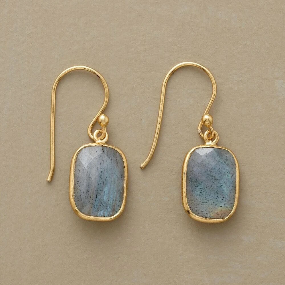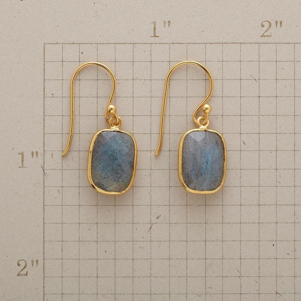 Simply framed in 18kt gold vermeil, faceted labradorite reflects light from both sides. French wires. Sundance exclusive. 1.12″l.