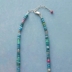 A single white topaz floats amid the cerulean blues of kyanite in a necklace to wear dramatically long or lavishly doubled. Facets spark light across the organically shaped stones, and 22kt gold-vermeil accents glow alongside the oxidized sterling silver bezels and links. Hook clasp. Handcrafted in USA. 40″L.