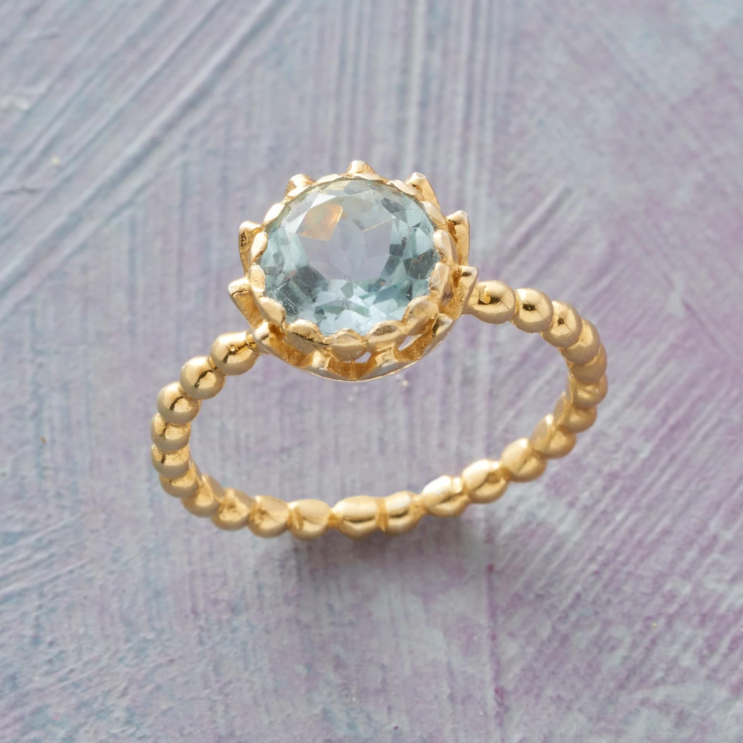 On a beaded band, our crystal clear blue topaz reigns within a crown-like setting Handcrafted of 14kt gold plated sterling silver. Exclusive. Whole sizes 5 to 9.