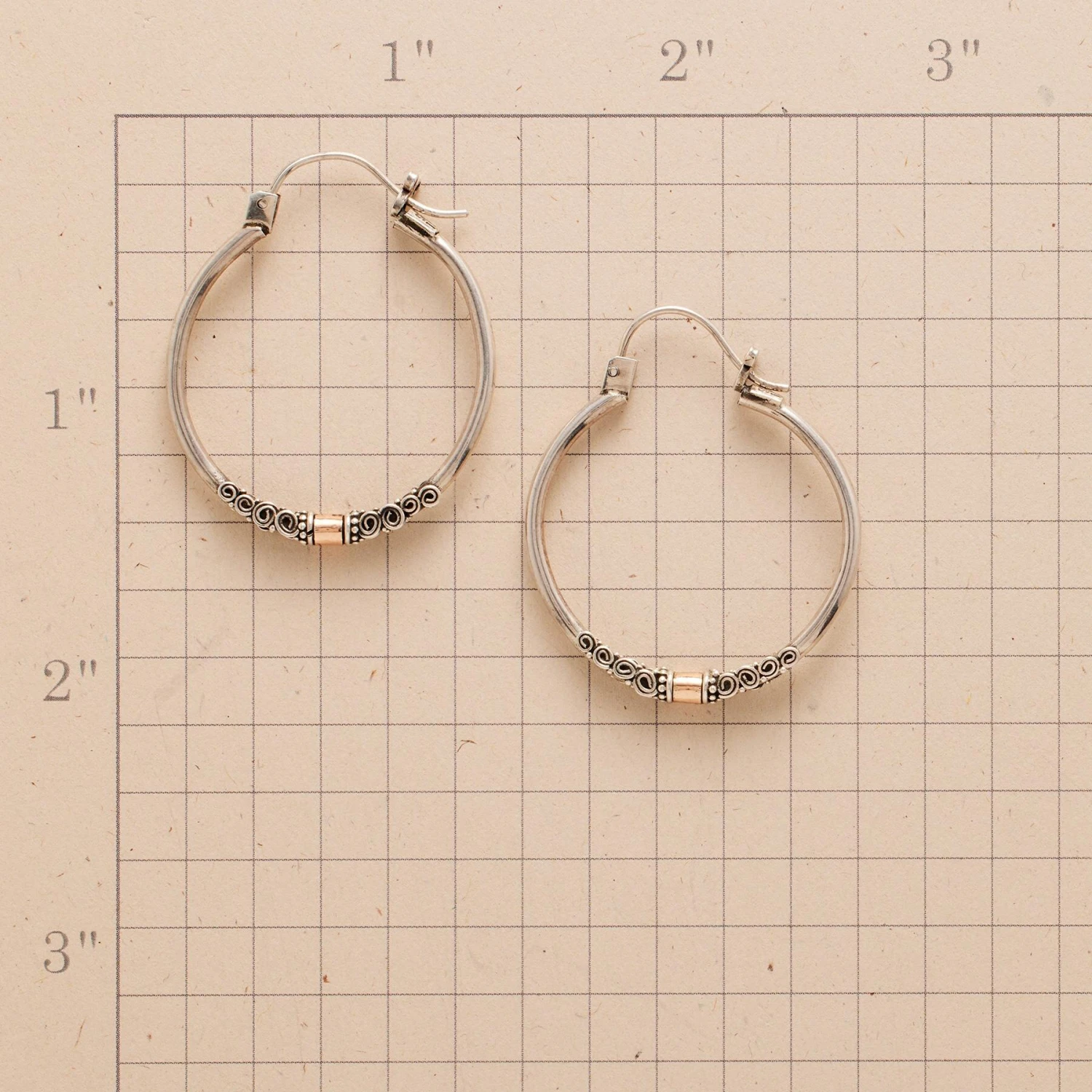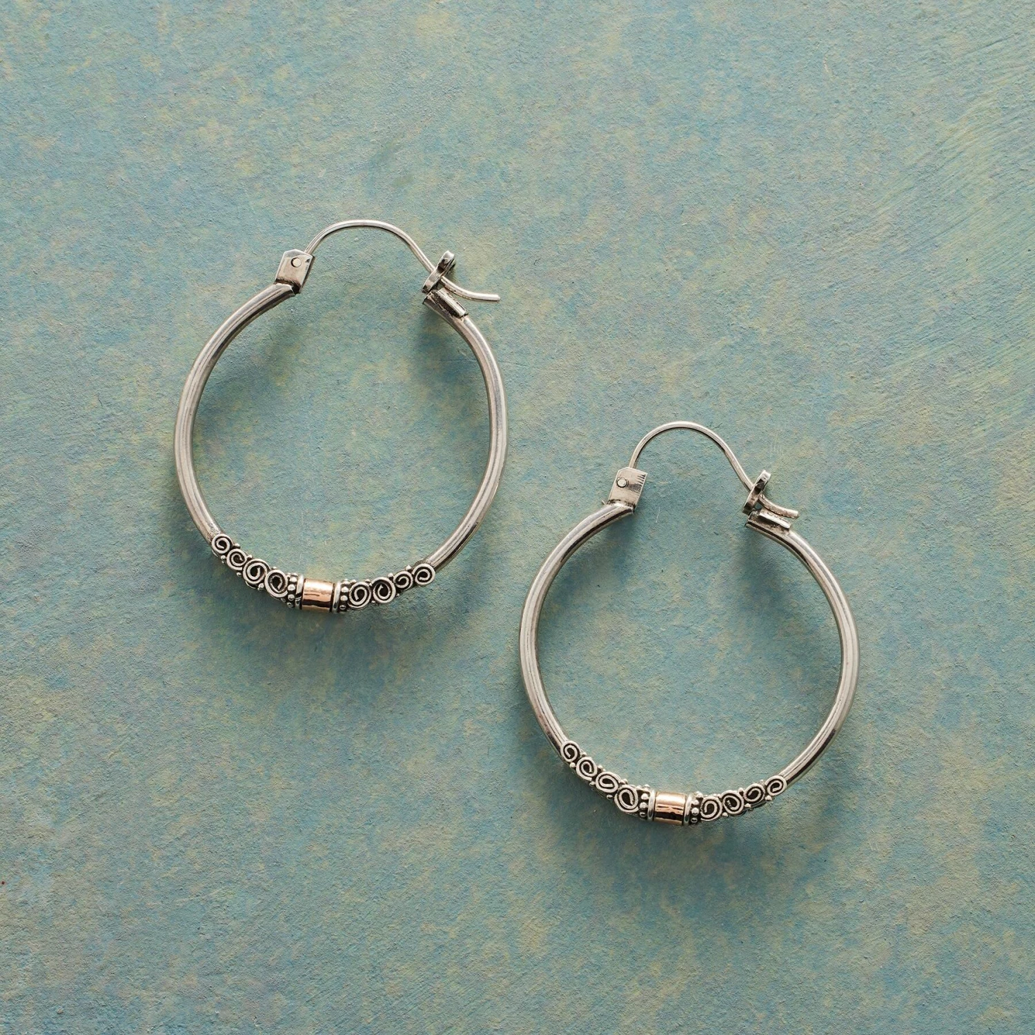 A band of 14kt gold vermeil shines in the wake of rolling waves on these sterling silver hoops. Self-locking wires. Handcrafted. Exclusive. 1-1/2″L.
